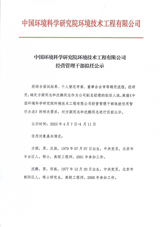 ?中國環(huán)境科學研究院環(huán)境技術工程有限公司版權所有 ICP備案編號:京ICP備2021022189號-1技術支持:平東信息